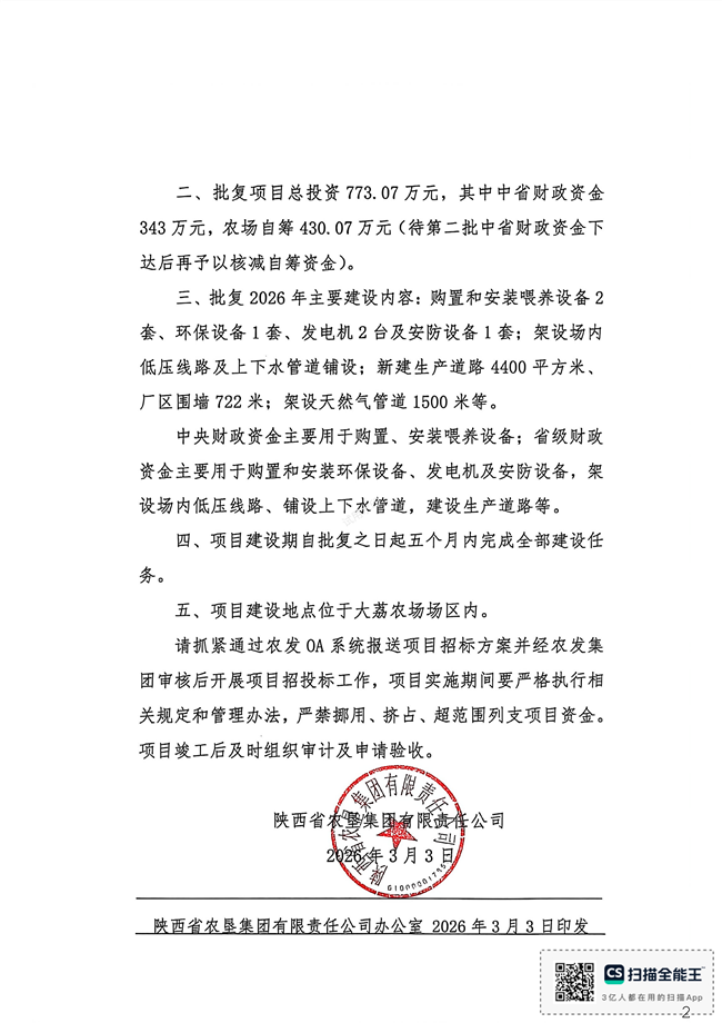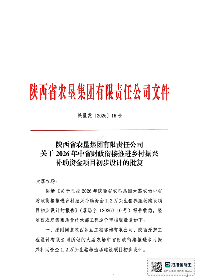 | 陕西省农垦集团有限责任公司 关于2026年中省财政衔接推进乡村振兴补助资金项目初步设计的批复的公示 |